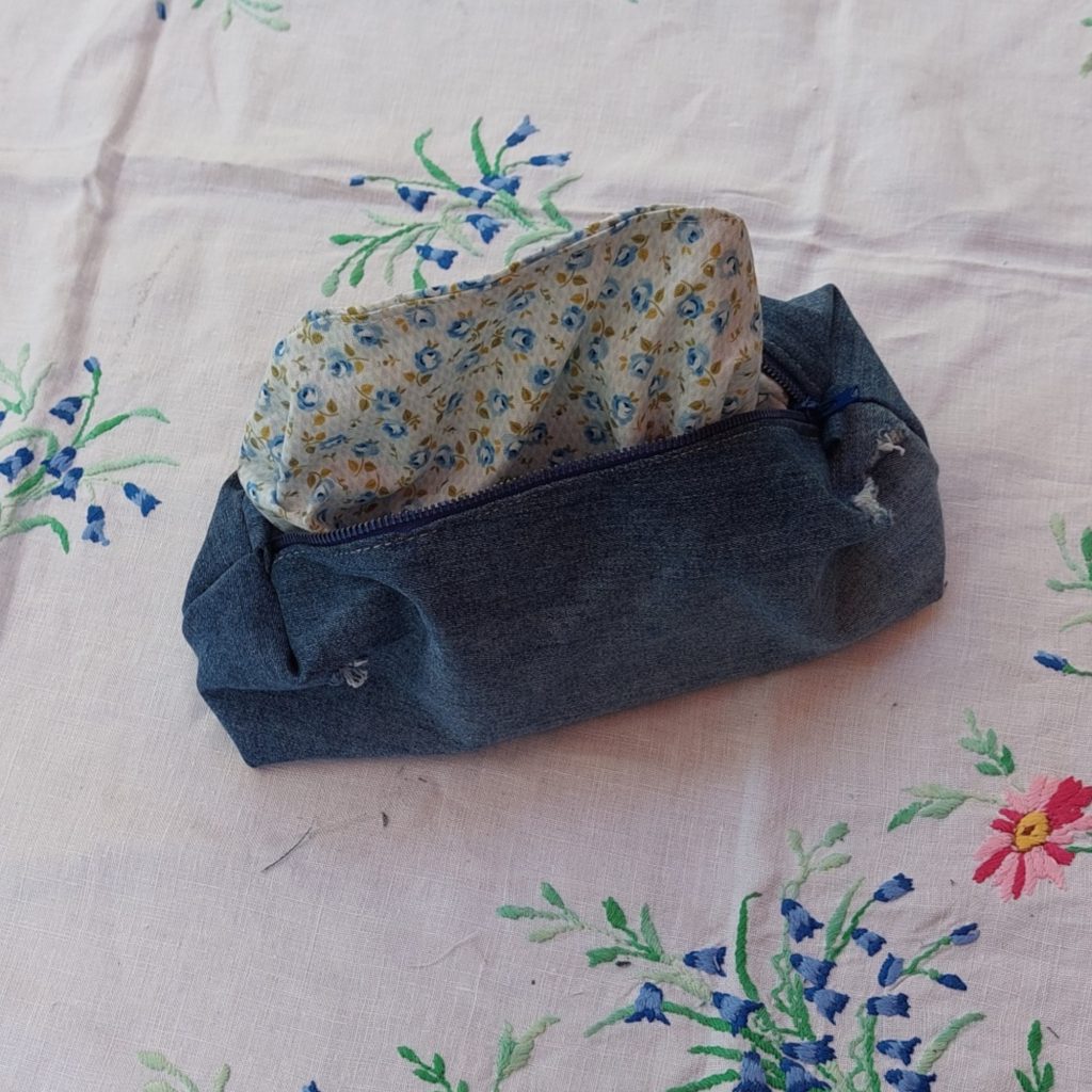 Here’s an idea of what to do with that old pair of jeans lying around in your wardrobe. Denim is such a strong, durable fabric and it makes a great choice to make into a pencil case. This box shape design, means it’ll hold all your stationery essentials.