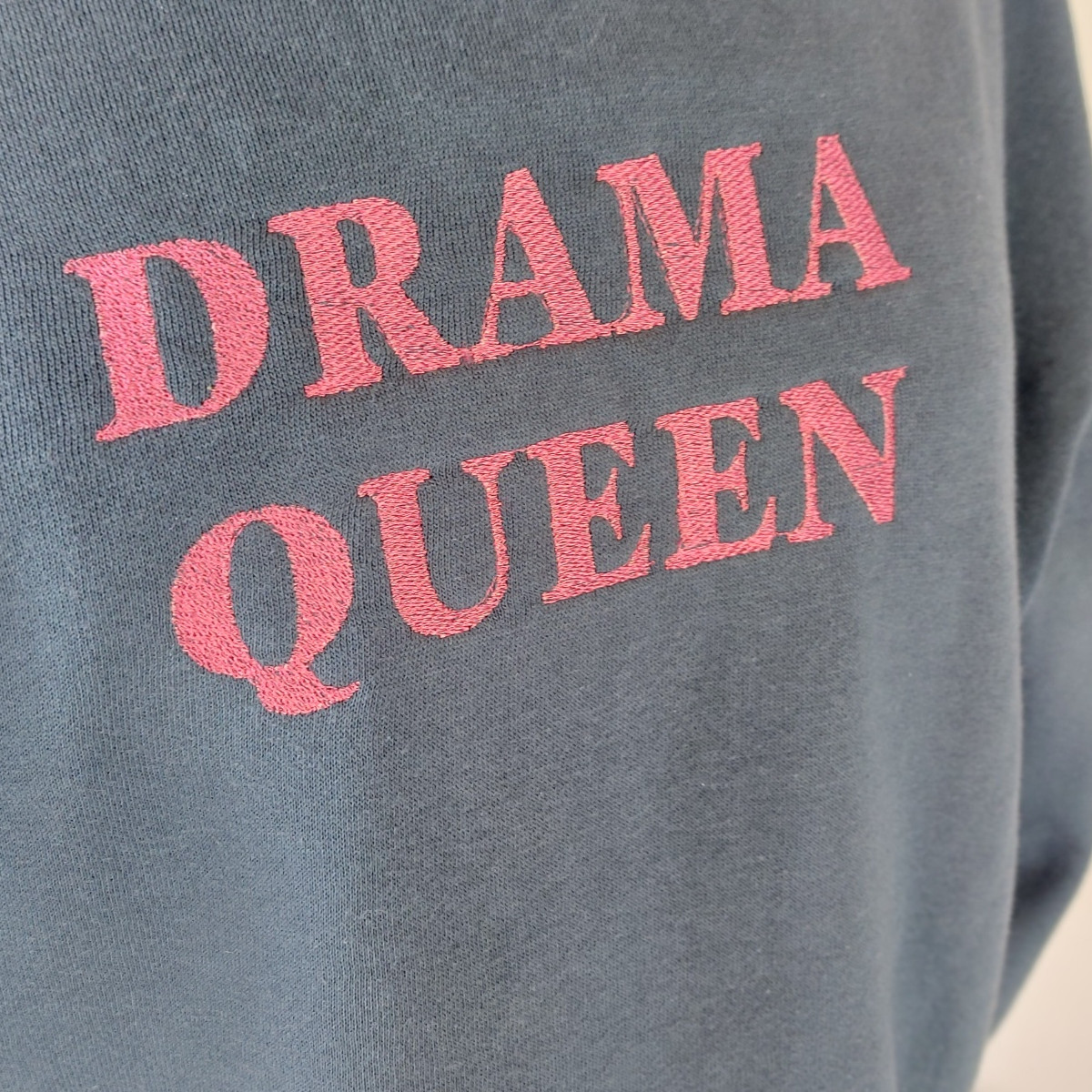 This upcycled hoodie is a fun and thoughtful gift idea with a sustainable twist. Each piece is carefully sourced from deadstock, or pre-loved sweatshirts and hoodies – clothing that would otherwise be destined for landfill or incineration. After rescuing these garments, we refresh them and add unique embroidered slogans, like ‘Drama Queen’, to give them a new life.