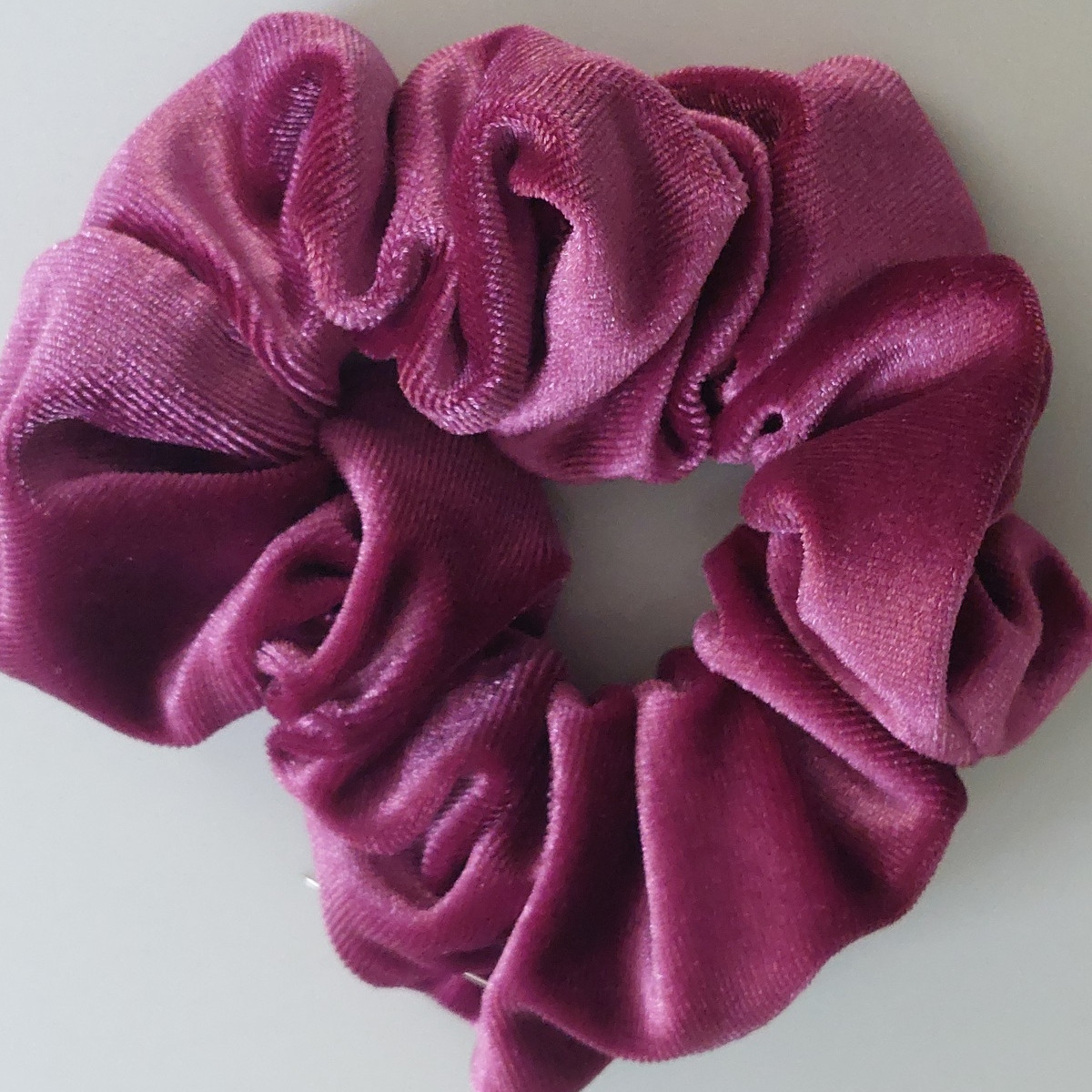 Upcycled velvet hot pink scrunchie – sustainable hair accessory and thoughtful gift